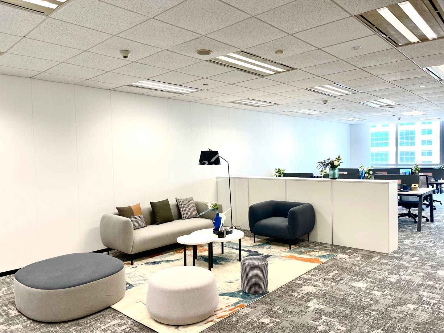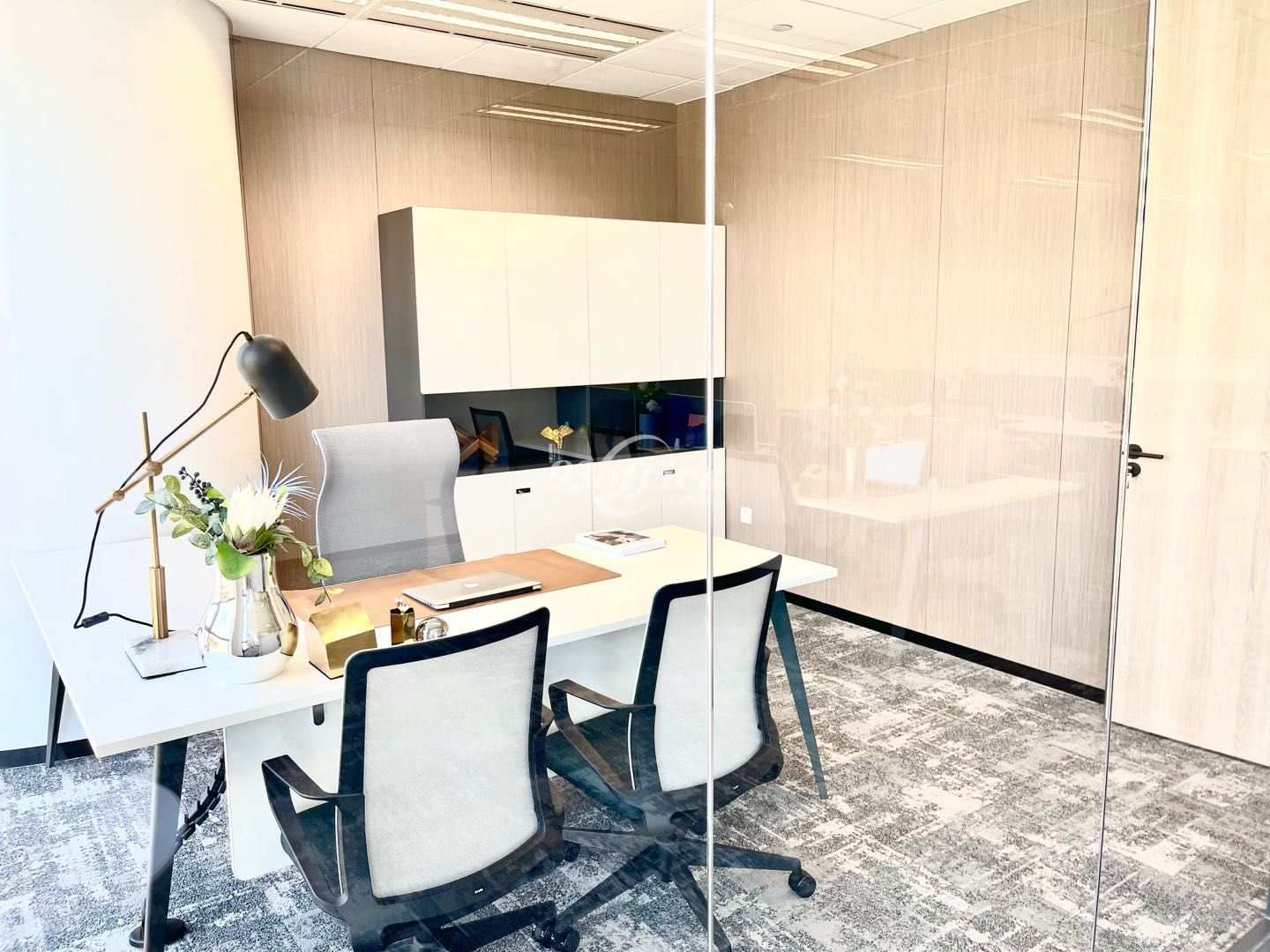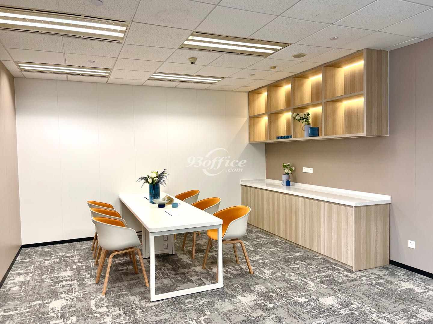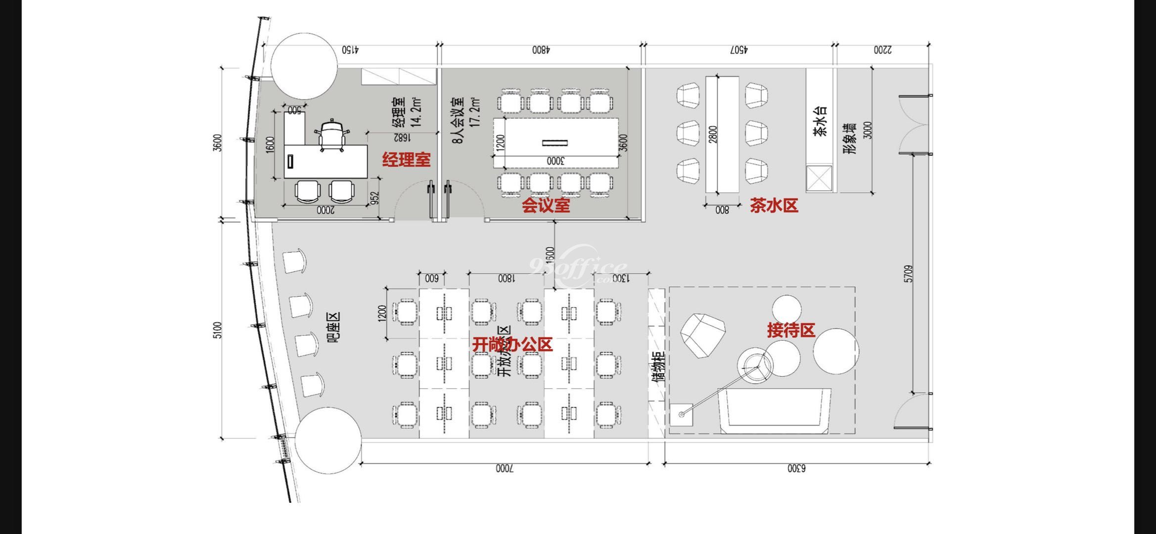 内部格局:LOGO墙、会议室、经理室、茶水间、员工区、层高2.7米。